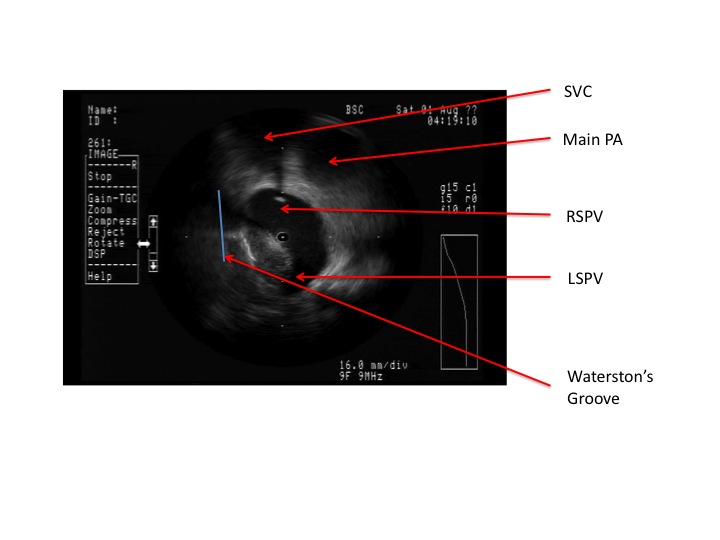 The use of intracardiac echocardiography (ICE) in atrial fibrillation ablations is quite common (and recommended by the Heart Rhythm Society) for obtaining access to the left atrium via transseptal punctures. The video tutorial below demonstrates the use of radial ICE (9MHz, UltraICE, Boston Scientific Corporation) to gain access to the left atrium. {I must acknowledge my mentor Dr. Dave Schwartzman, University of Pittsburgh Medical Center, spent several months/years laboriously explaining left atrial anatomy and the electroanatomic correlations of left atrial anatomy; None of the ICE images would be possible without his guidance.}
